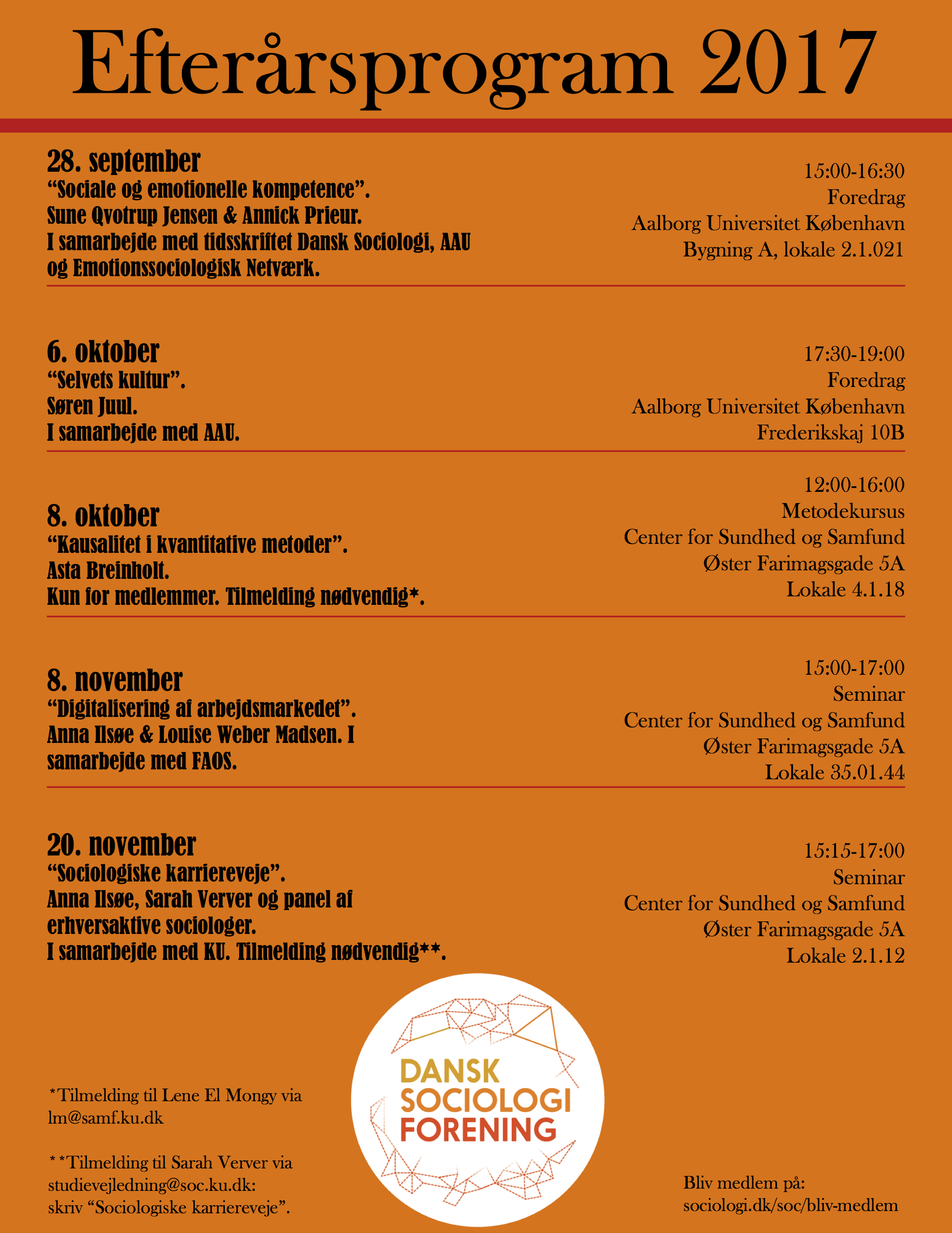 Dansk Sociologiforenings efterårsprogram er nu klart.